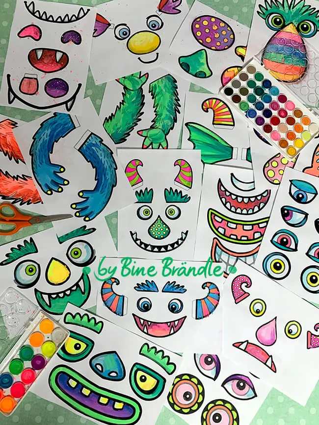 - 📄 22 DIN-A4-Seiten mit einzelnen Augen, Nasen, Mündern, Hörnern, Armen & mehr