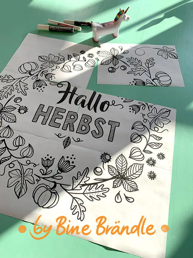 Dieser große Herbstkranz ist speziell als Abpaus-Vorlage für Kreide- oder Acrylmarker gedacht und eignet sich perfekt für kreative Herbstideen.